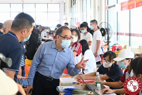 志愿者们严格遵守疫情防控需要,戴好口罩,出示“48小时核酸”采样证明。而后,志愿者们有序开展志愿活动,引导新生前往六号楼注册处,协助驻营老师为新生办理入学手续,录入新生报到信息、为新生答疑解难。