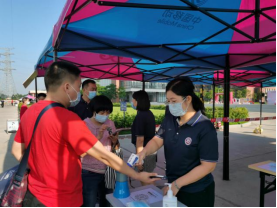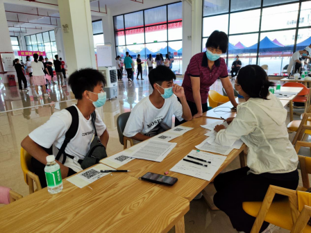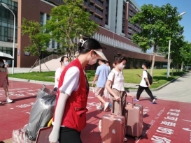 在校门口外,志愿者们积极引导新生及家长按防疫要求出示健康码、行程卡、测体温,确保新同学们的安全健康;报到场里设有报到绿色通道、家长休息区、卫生医疗点等,还有许多热情可爱的志愿者们的帮助和指引,让同学们能够快速、顺利地报到并入住宿舍。