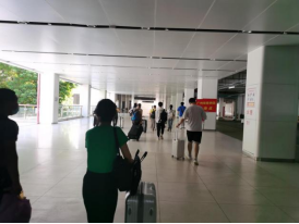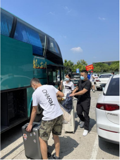 老师和志愿者们早早出发到各车站点等候新同学们的到来。志愿者们引导到站的学生及家长到乘车点,乘坐校车前往学校。