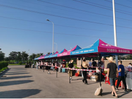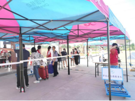 9月2日,四会校区各部门精心准备迎新场地的布置,校门口搭建帐篷设置已缴费与未缴费报到入校通道、在6号楼一楼设置核酸检测采样通道,以及各学院报到点和财务处缴费点。此外,在6号楼门外空地搭建帐篷供家长休息,与学生行李临时存放点。一切已准备就绪,迎接新同学的到来!