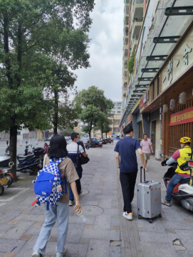 校领导看望参与迎新工作的一线工作人员,与新生及其家长亲切交流,并勉励新同学们刻苦学习,成长成才,继承和发扬华商优良传统。