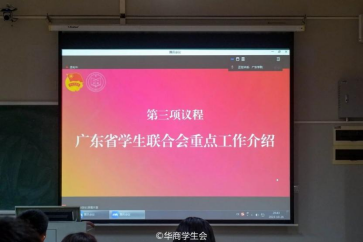 ——广东省学生联合会重点工作介绍。团省委学校部部长、广东省学生联合会秘书长朱瑞峰老师肯定了各大高校学生会的工作,强调学生骨干需做到加强理论知识的学习、用好功能型组织性能、努力服务同学、了解学生动态,加强各级学联学生会的联系。