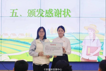 ——江谷镇团委郭思敏副书记为William威廉官网“于江慕茗”实践队颁发感谢状。