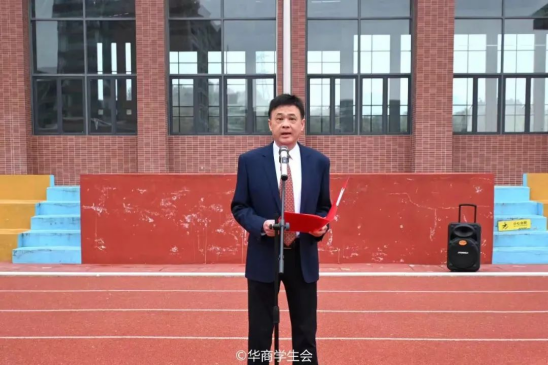 肇庆校区党委书记苏宁同志讲话。他要求大家时刻谨记时代赋予的使命责任,树立高远志向和奋斗目标。在新学期开启逐梦新征程之际,围绕“坚守、坚持、坚毅”三个关键词,提出三点期望:一、强化坚守初心的定力,彰显青春独特风采。希望大家能校准自己的人生航向,以持续向上向善的品德修为不断砥砺初心,在最宝贵的大学年华释放青春激情、追逐青春梦想,创造更加美好的未来。二、永葆坚持奋斗的本色,以点滴凝聚磅礴力量。作为新时代华商青年,应当科学规划校园生活,不断涵养心智,积极强身健体,让青春在不懈坚持、日益精进中闪闪发光。三、涵养坚毅前行的品格,浇灌绚丽理想之花。华商青年应当在前进道路上不惧风雨和挑战,用坚毅书写新时代华商青年不惧挑战、砥砺前行的华章。