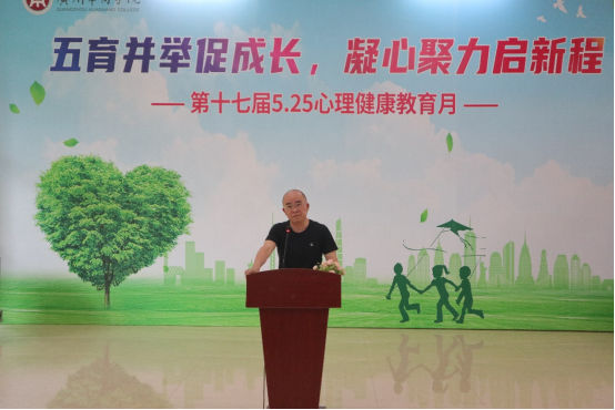 2024年5月28日下午,在肇庆校区六号楼大厅举行以“五育并举促成长,凝心聚力启新程”为主题的第十七届5·25心理健康教育月活动。王卫平副校长,肇庆校区党委苏宁书记,学工办付蔚莹主任、古文胜科长,各心康分站指导老师,心康中心老师等参加了本次活动。