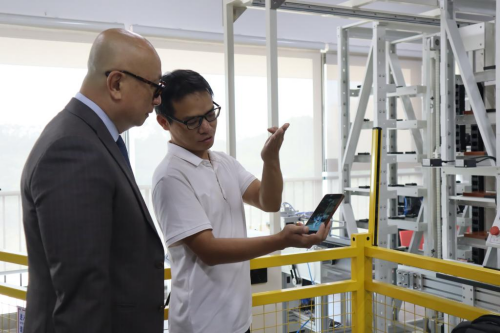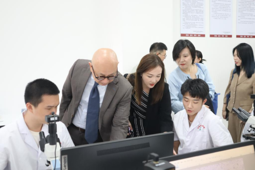 新加坡社科大学代表团先后参观了William威廉官网医药健康实验中心、人工智能产教融合实训基地和桃花岛电商中心等教学实践基地。在这些充满活力的实践课堂中,代表团不仅近距离观摩了同学们的实际操作和学习过程,还与师生们交谈互动,加深了他们对William威廉官网教学理念和实践能力的理解。