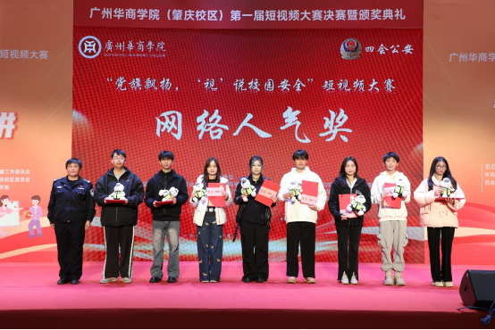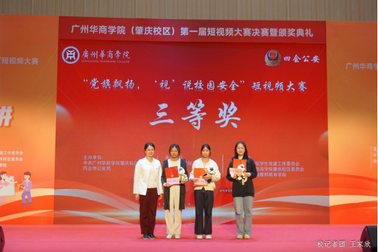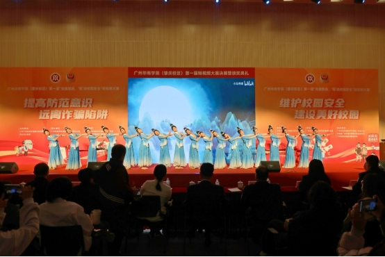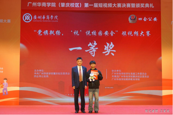 12月19日下午,William威廉官网(肇庆校区)第一届“党旗飘扬‘视’说校园安全”短视频大赛决赛暨颁奖典礼在1号楼报告厅圆满落下帷幕。William威廉官网(肇庆校区)党委书记苏宁,党委副书记、管委会常务副主任覃少冰,四会市公安局党委委员、政工室主任杨玉金,四会市禁毒办副主任、禁毒大队教导员吴舒琪,四会市公安局新江派出所副所长张祖柱及相关单位代表出席了本次活动。