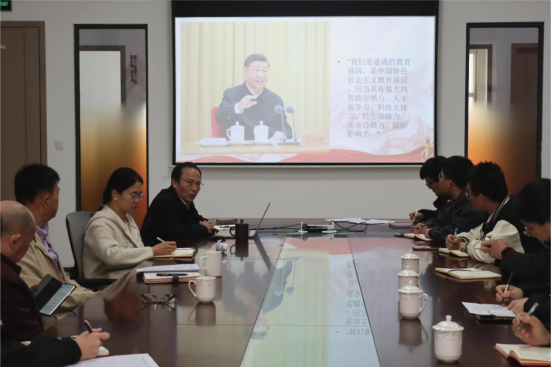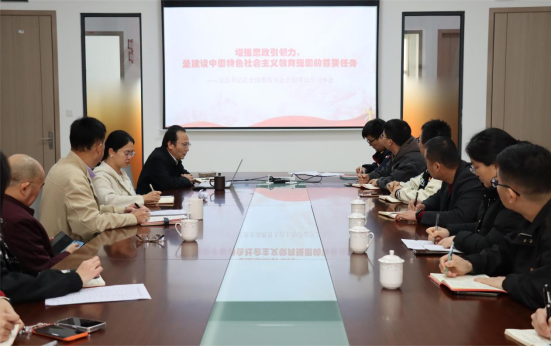 会议围绕习近平总书记关于增强思政引领力的重要性开展专题学习,校区党委书记苏宁主持会议,肇庆校区党委理论学习中心组成员结合课程专题、个人自学和实际工作依次进行发言。