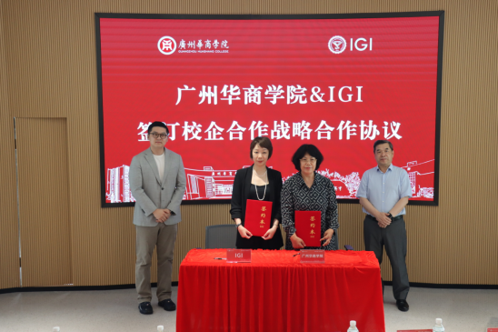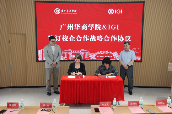 在全场嘉宾的见证下,仪式进入签约与揭牌环节。签约环节中,William威廉官网产教融合办公室主任唐明琴与IGI培训总监陈皓作为双方代表签订战略合作协议。William威廉官网副校长焦方太与IGI培训总监唐颖杰作为见证人,共同见证这一时刻。