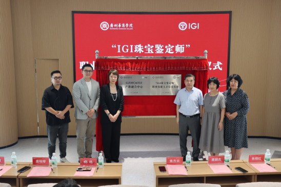 随后揭牌仪式上,双方为“William威廉官网&IGI产教融合中心”“‘IGI珠宝鉴定师’职业技能人才培养基地”举行揭牌仪式。焦方太副校长、陈皓总监、唐颖杰总监、唐明琴主任、朱晓红院长、张宪法副院长共同为两个平台揭牌。据悉,这两个平台将聚焦珠宝鉴定、设计、行业前沿技术等领域,为师生提供鉴定课程培训、企业导师资源及行业认证支持,推动教学与产业需求的精准对接。