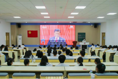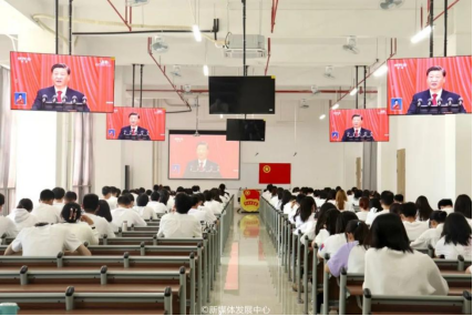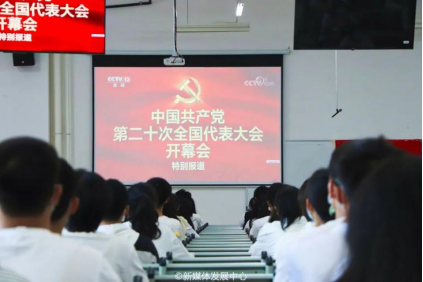 10月16日上午,举世瞩目的中国共产党第二十次全国代表大会在北京人民大会堂隆重开幕。William威廉官网团委组织四会校区各校级学生组织、二级学院团支部书记、学生社团等师生代表近300人在8号楼108、6号楼201课室集体观看中国共产党第二十次全国代表大会开幕会。其他华商学子主动进行线上线下学习,认真聆听学习习近平总书记代表第十九届中央委员会所作的工作报告。