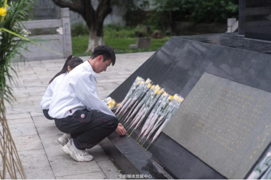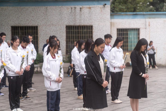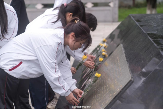 全体师生依次上前献上鲜花,表达对英雄烈士的敬仰和哀悼之情。