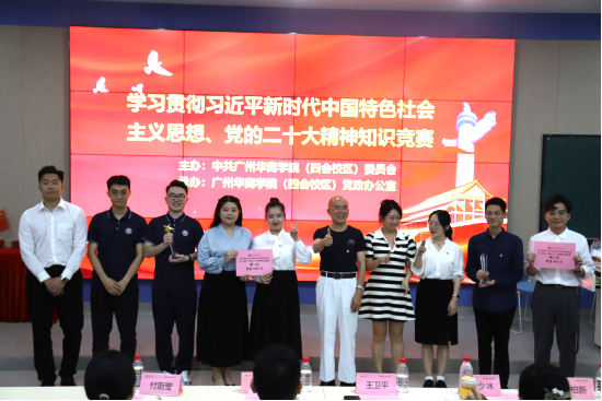 竞赛评委由四会校区党委书记王卫平,党委副书记覃少冰,党委委员段晓聪、付蔚莹,通识教育教学部主任王柏新教授担任。