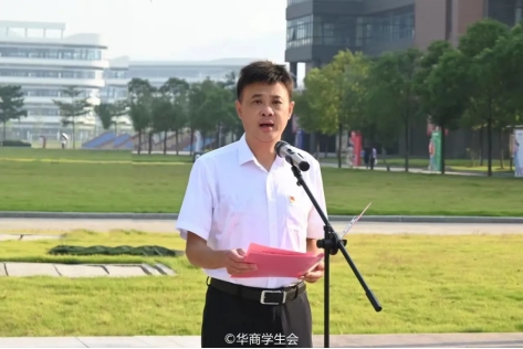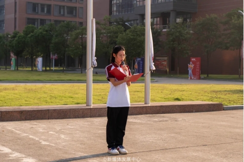肇庆校区学生代表卓思妍在国旗下作表态发言。卓思妍表示,将继续以习近平新时代中国特色社会主义思想为指引,在党的二十届三中全会精神的鼓舞下,锐意进取,拼搏进取。她向华商学子发出三点号召:一、专注学习,积极实践。二、强化自律,培养品格。三、关注创新,勇于探索。