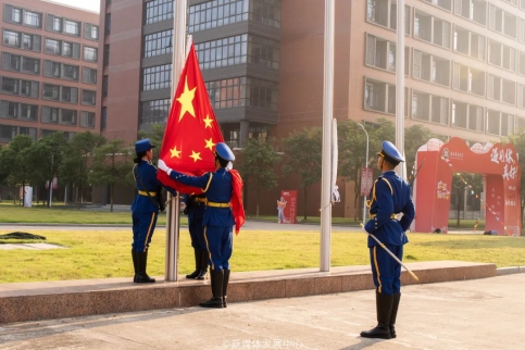 “齐步走!” 随着一声嘹亮的口令,国旗护卫队队员迈着整齐划一的步伐,护送鲜艳的五星红旗走向升旗台。他们目光坚毅,步伐有力,每一步都踏出对祖国的忠诚与热爱。庄严的国歌响起,五星红旗在朝阳中冉冉升起,激昂的旋律在空气中回荡。师生们齐唱国歌,行注目礼,脸上洋溢着自豪与骄傲。