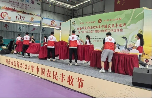 华商志愿者为本次的丰收节开幕布置好活动场地,并在活动开始前协助进行活动的彩排,保证活动的顺利开展。本次活动的开展歌颂农民的辛勤劳作,展现农民丰收的喜悦,启示青年积极关注农业的重要性,华商青年志愿者为此贡献青春力量。
