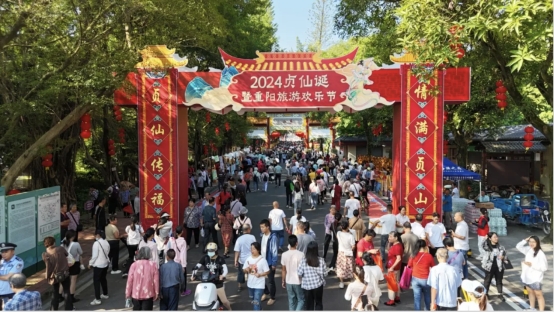 为纪念文氏贞仙,传递美好祝愿。10月11日,2024年“贞仙诞”暨重阳旅游欢乐节活动在四会市贞山省级旅游度假区顺利举行,吸引了超10万名本地市民及外地游客参与。在校区党委、管委会的领导下,在团四会市委的支持下,校区团委、青年志愿者协会组织40名志愿者参与协助活动。