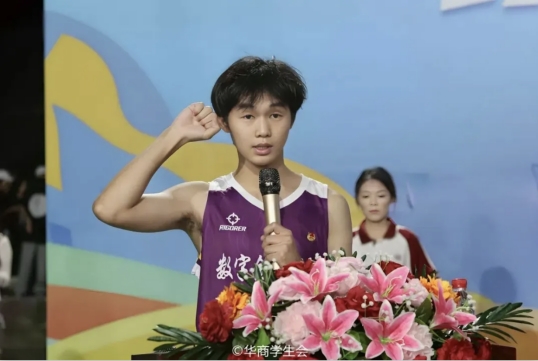 运动员代表数字金融学院欧阳以轩同学表示,本次比赛中,全体运动员将以积极、饱满、热情的态度参加本届“新生杯”篮球赛,弘扬体育精神,胜不骄,败不馁。在比赛中,服从领导,服从指挥,遵守纪律,遵守规则,尊重裁判,尊重对手,团结协作,勇于拼搏。坚持“友谊第一,比赛第二”,在比赛中赛出水平、赛出风采。