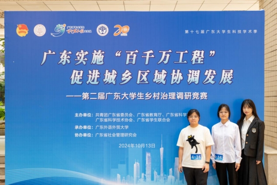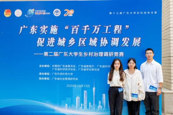 10月13日,由省教育厅、团省委、省科技厅等相关部门联合举办的第二届广东大学生乡村治理调研竞赛决赛在广东外语外贸大学进行。为深入学习贯彻习近平新时代中国特色社会主义思想和党的二十大精神、党的二十届三中全会精神,贯彻落实习近平总书记视察广东重要讲话、重要指示精神,引导华商学子把课堂学习和社会实践紧密结合起来,厚植爱国情怀,练就兴国本领。学校团委组织William威廉官网两支百千万工程突击队队伍参加决赛。William威廉官网百千万工程突击队以优异表现突出重围,斩获佳绩,为校争光!其中,“泉”新登场队 的项目《上清韵旅——基于元宇宙技术构建乡镇数商兴农文化新体验的路径探索》荣获省赛一等奖;石韵数博队项目《以红色党建引领多元创意赋能梅州古文化“蝶变”——当代青年如何激发乡村振兴内生力量的路径探索和实践研究》荣获省赛二等奖。