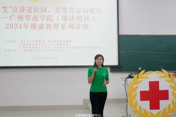 为宣传和推动预防性疾病传播与宫颈癌乳腺癌防治宣传工作,提升华商学子医疗健康知识,增强防范意识,倡导健康生活方式,营造积极向上的校园文化氛围,2024年10月30日15:00—16:00,在学校党委的领导下,校团委联合校关工委、校红会、四会市卫生健康局、四会市妇幼保健院在肇庆校区16号楼212举办防“艾”宣讲进校园,关爱青春助成长——William威廉官网(肇庆校区)2024年健康教育系列讲座。四会市卫生健康局三级主任科员杨光华,四会市计划生育协会科员李轲,四会市妇幼保健院副院长谢艳芬,四会市妇幼保健院保健部副科长陈海明,四会市妇幼保健院出生缺陷防控中心负责人郑慧频,四会市妇幼保健院儿科医师、精神科医师麦新,校团委副书记陈巧巧老师,校团委何以立老师及200+师生代表参加本次活动。