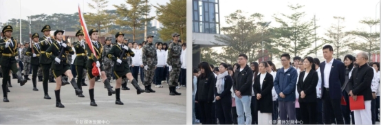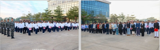 副校长王卫平教授,肇庆校区党委书记苏宁,校长助理覃少冰,学校各党群部门负责人、各学院党委书记、校院两级团组织负责人、学生会指导老师及校级学生组织代表、各学院学生代表近1000人参加本次升旗仪式。升旗仪式由校长助理覃少冰主持。