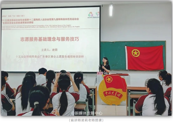 4月19日,在肇庆校区16号楼104,肇庆学院马克思主义学院党委副书记杜志欣以《大型赛会志愿服务纪律规范》为主题,立足赛事服务工作的规范性与特殊性,深入阐释了纪律建设在志愿服务中的核心地位与实践路径,为志愿者们即将投身的服务工作提供了有力的指导和支持,他勉励志愿者以“使命必达”的信念践行岗位职责,用严明的纪律作风展现青年志愿者的专业素养,在服务中树标杆、作表率,为赛会成功举办贡献坚实力量。