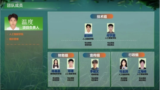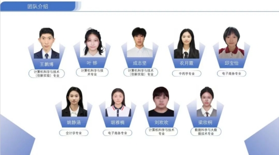 项目负责人:王鹏博,项目成员:叶铧,成志坚,农月霞,邱宝怡,姚静涵,胡雅楠,刘欢欢,梁欣桐,指导老师:王怡时,吴诗雨,黄亚丽,项目概况:项目以创新的“元宇宙+社交电商”模式,落地肇庆市上清湾村。运用前沿技术,构建虚拟上清湾村数字孪生世界,借助5G+AI技术,真实还原当地著名景观。游客通过VR、AR设备即可沉浸式体验当地风情,还能在云端购物,购买特色农产品,实现线上线下融合发展。在营销推广上,项目利用数字人直播,与观众实时互动,24小时不间断展示当地文旅特色;同时借助抖音、微信等社交平台,广泛宣传特色产业,提升品牌知名度。此外,项目还设计了系列文创周边,增强品牌吸引力。