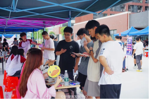 这里汇集了许多优秀的团队,每个学生组织、学生社团都可谓是各有千秋、独具魅力。现场也是非常热闹,小萌新们井然有序地交流咨询,连绵不断的欢声笑语充斥整个活动现场。炽热的骄阳当空,天气虽热,但似乎抵挡不住你我无限的热情,小萌新们迎着艳阳、迎着蓝天迈向摊位,这也许是拥抱大学校园生活的新一步。