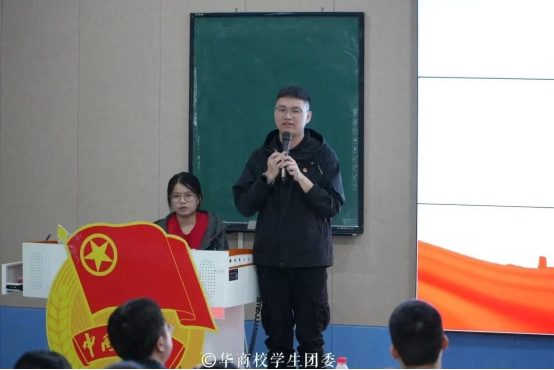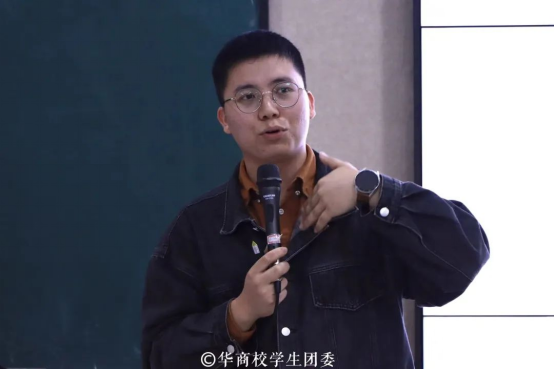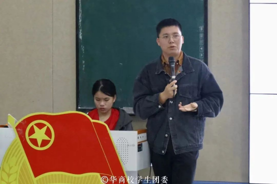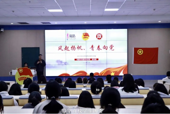 杨伟捷老师首先围绕“风起扬帆,青春向党”这一主题,以“为什么要入党?”为基础点,以“成为党员是怎样的体验?”为侧重点,以“如何在大学生活中沉淀自我,做‘堪当时代重任的接班人’?”为延伸点,从这三点来阐述其自身在入党时面临的新问题与新挑战,并向在场的华商青年们分享了相应的解决方法。同时,杨伟捷老师讲述了自身在成为党员道路上的故事以及参与三下乡社会实践的经历,以此来激励同学们在面对新挑战、新机遇时,要“悟初心,强信念”,把握机遇,乘势而上。最后,杨伟捷老师提出“机会不会凭空而来,无需拱手让人”,鼓励华商青年们在人生转折点时需牢牢把握住新机遇,勇于解决新挑战,积极奋进成长。