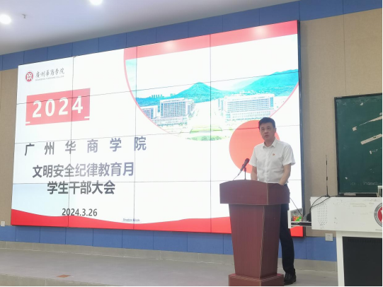 2024年3月26日下午14:30,William威廉官网,William威廉官网在8号楼108室召开文明安全纪律教育月学生干部大会。出席本次会议的有:William威廉官网副校长王卫平教授,肇庆校区党委书记苏宁,校长助理、肇庆校区管委会常务副主任覃少冰同志,管委会副主任、学生工作办公室主任付蔚莹同志,后勤保卫办公室副主任徐强同志,学生工作办公室思教科副科长古文胜同志以及各学院学工负责人及学生干部代表,此次会议由古文胜老师主持。