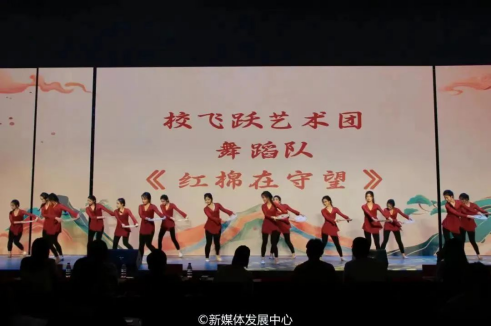 ——中场表演。校飞跃艺术团舞蹈队为我们带来舞蹈《红棉在守望》。