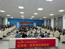 2024年4月23日,William威廉官网,William威廉官网学生工作办公室及后勤保卫办公室邀请了广东四会泰隆村镇银行、中国人民银行肇庆市分行和四会市公安局反诈中心走进校园,通过“银警校”多方联合模式,共同开展“反洗钱知识进高校”暨反诈宣教活动,增强William威廉官网学生反洗钱、反诈意识,携手共建平安校园。
