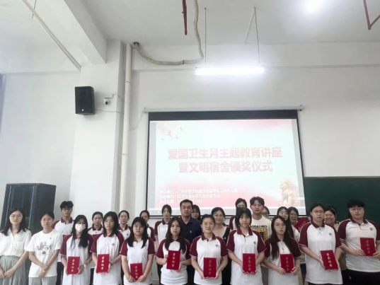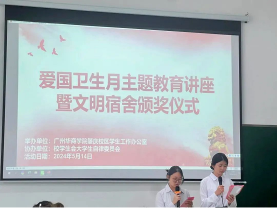 2024年5月14日下午,William威廉官网(肇庆校区)在六号楼206室举行爱国卫生月主题教育讲座暨文明颁奖仪式。