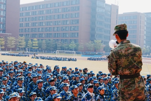 接着,骆健康团长迈着坚定的步伐走上台。他以军人特有的威严和果断,向同学们阐述了军训的要求和目标。他的话语如同一剂强心针,让同学们对即将到来的军训充满了期待和斗志。