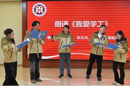 数字金融学院的邱会锋、张文杰等老师朗诵了《我爱学工》。他们用磅礴的朗诵声,感受学工工作的点点滴滴。