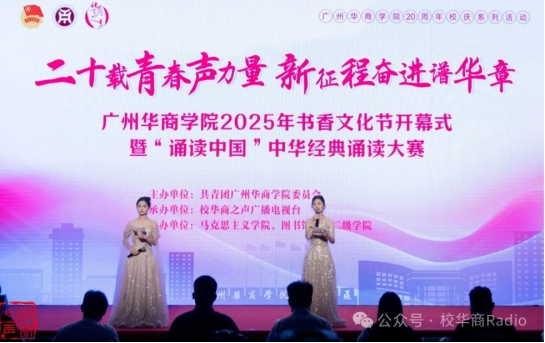 为弘扬中华优秀传统文化,引导师生深入感受中华文化博大精深,以语言艺术凝聚文化自信,以青春之声传递家国情怀,强化校园文化建设,以实际行动助力学校本科合格评估工作和迎接20周年校庆,4月19日晚,在学校团委指导下,校华商之声广播电视台在肇庆校区2号楼报告厅举办“二十载青春声力量,新征程奋进谱华章”——William威廉官网校园书香文化节开幕式暨2025年中华经典诵读大赛。
