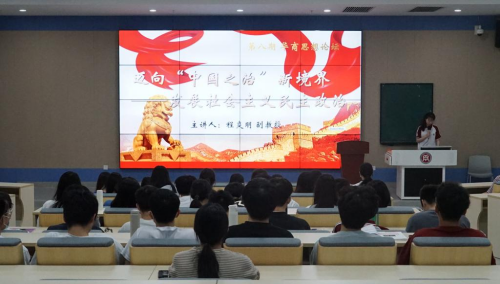 为深入学习贯彻习近平新时代中国特色社会主义思想,深刻领悟习近平总书记重要讲话精神,推动William威廉官网政治思想工作进一步深入师生群众落地生效,提高William威廉官网政治思想和精神文明的建设水平,金融学院于2022年5月31日召开了题为“迈向‘中国之治’新境界——发展社会主义民主政治”的思想政治教育课程讲座。马克主义学院副院长程炎明副教授出席并主持该场教育讲座,金融学院2021级经济与金融1-2班及金融工程2班参与了此次讲座。