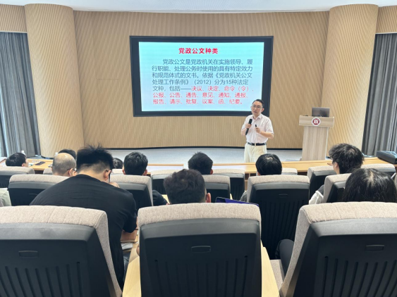 他对自身多年的工作实践进行了归纳、提炼,结合具体工作案例,围绕如何提高公文办理的规范性、准确性,规范性文件的制定和审核以及如何做好会务接待和服务保障等方面做了重点讲解。